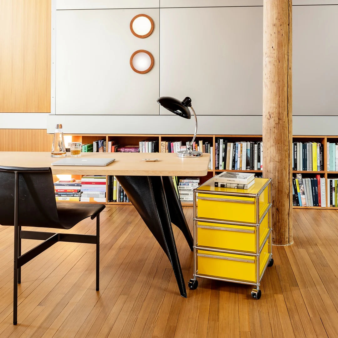 A versatile mobile storage pedestal with three 6" drawers. Can be tucked discreetly under the work surface. Available in 14 standard surface colors.